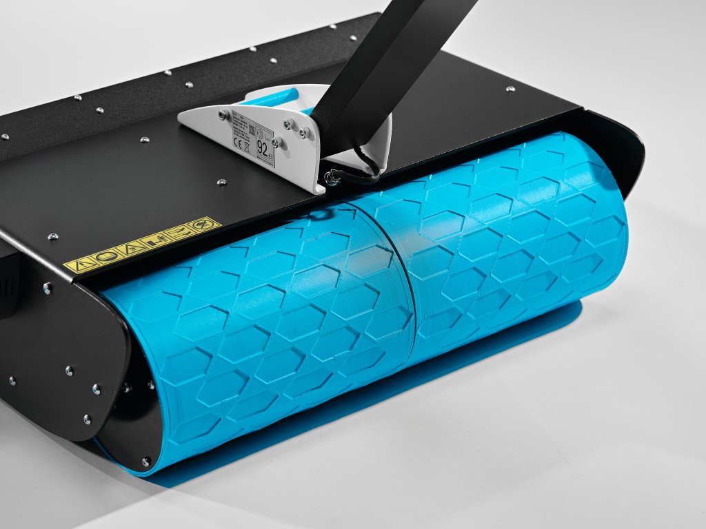 Sekačka je osazena vpředu hliníkovým válcem, který chrání žací ústrojí před poškozením překážkami či nečistotami a velkým zadním válcem, který snižuje tlak sekačky na trávník a vytváří klasické pruhování trávníku. Zadní válec je z flexibilního polypropylénu, čímž má skvělé vlastnosti odolné proti proražení nebo poškrábání, navíc jízda po dlažbě či betonu je naprosto tichá a šetrná. Sekačka nemá pohon pojezdu, válce jsou uloženy v ložiscích, díky nimž je pohyb sekačky velmi snadný a příjemný.