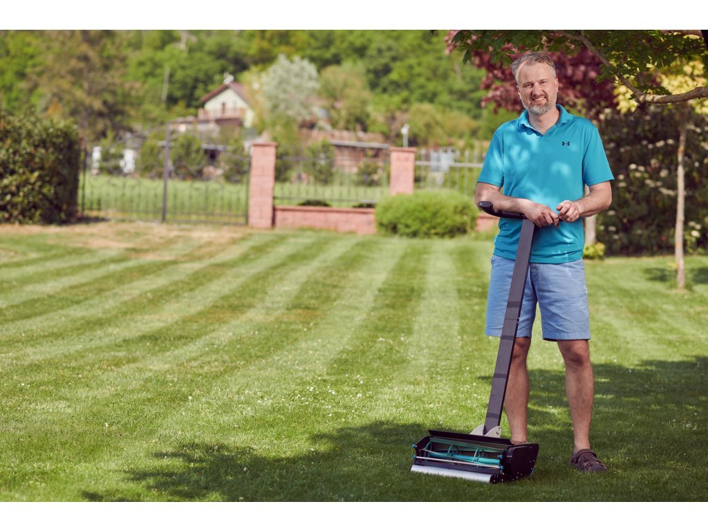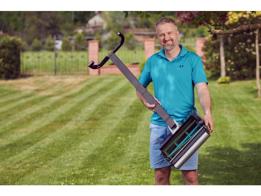 Vřetenová sekačka ELO 1 model 45 cm je určena pro menší trávníky do 300 m2. Záběr střihu 45 cm.