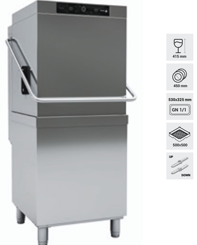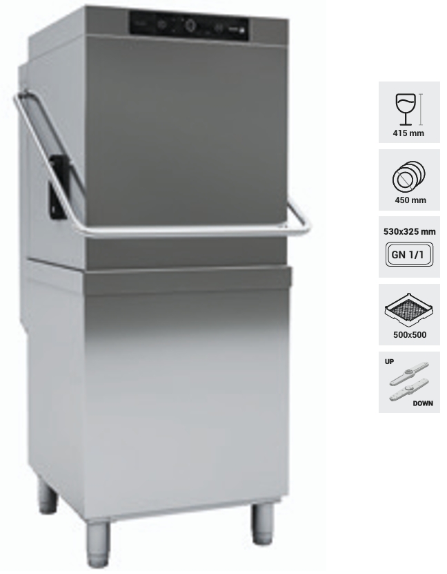Kapotová, průchozí myčka Fagor Profesionál Advace s košem 500 x 500