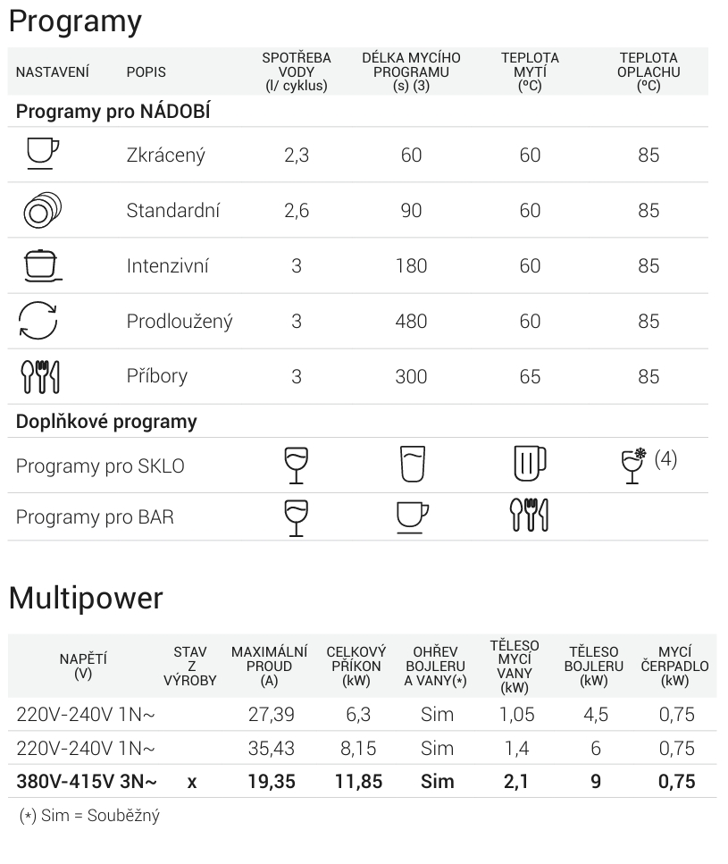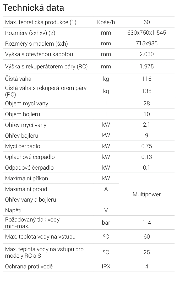 - Horní a spodní mycí/oplachová ramena Duo-KLIP z kompozitního
