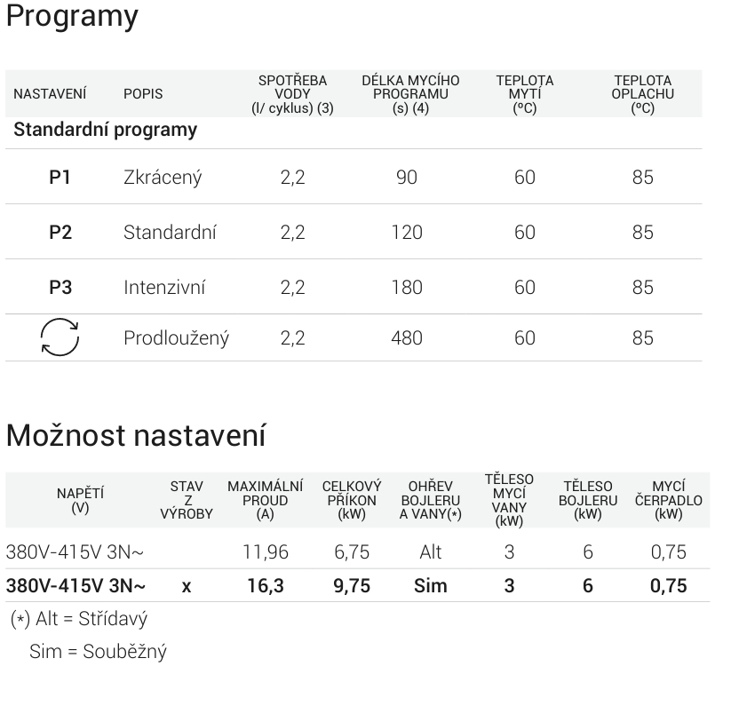 - Oplachování tlakem ze sítě.- Podtlakový dávkovač oplachového prostředku.